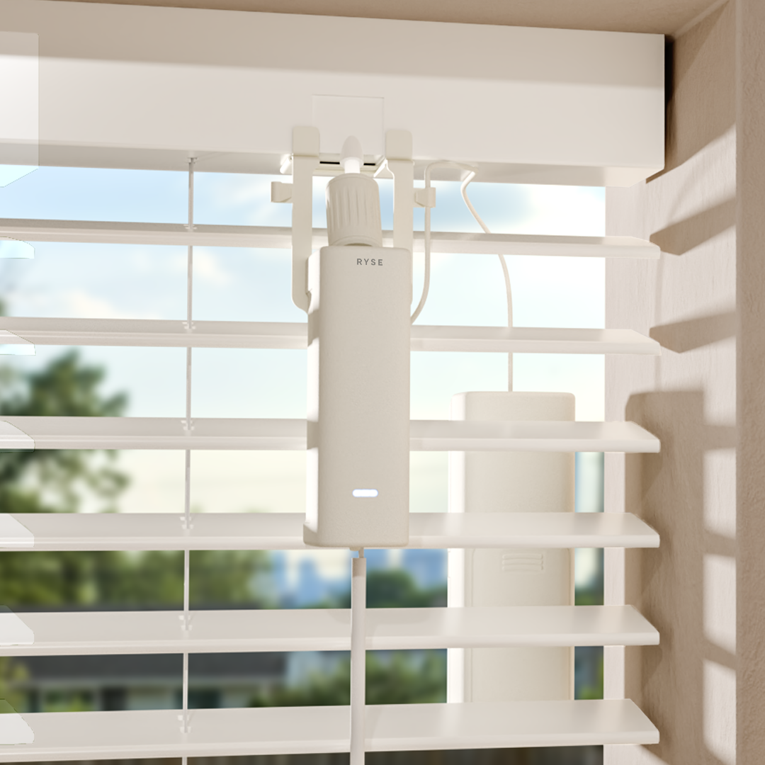 The RYSE SmartBlind transforms your existing horizontal blinds with tilt wand into motorized smart blinds in minutes—no replacement required.