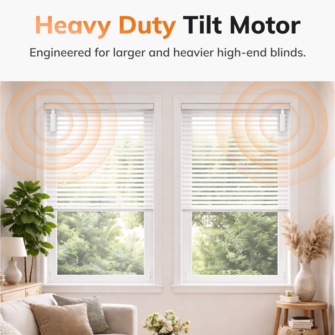 • POWERFUL HEAVY-DUTY MOTOR – Engineered for larger and heavier horizontal blinds, SmartBlind’s strong tilt motor smoothly adjusts slats with precision for reliable everyday performance.