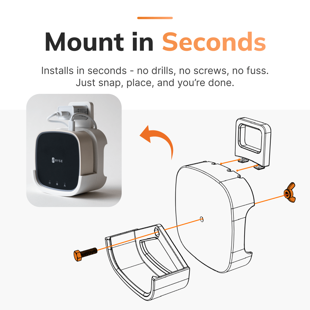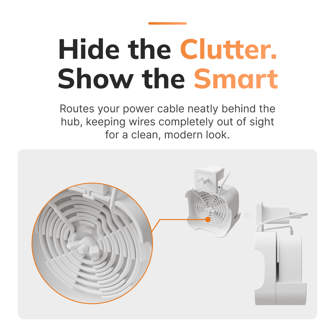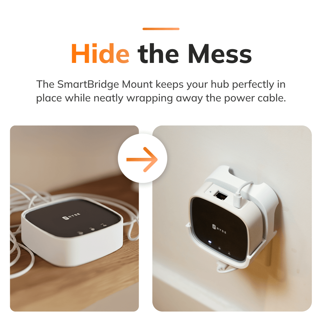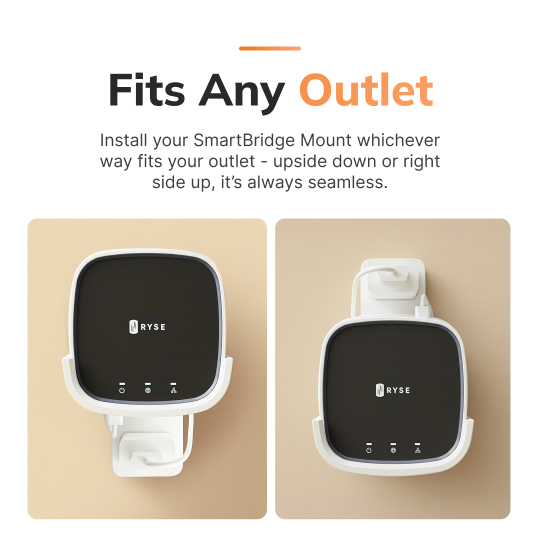 The SmartBridge Mount is an add-on accessory for the SmartBridge that streamlines your setup with integrated wire management. It tidies up cables and plugs directly into an outlet.